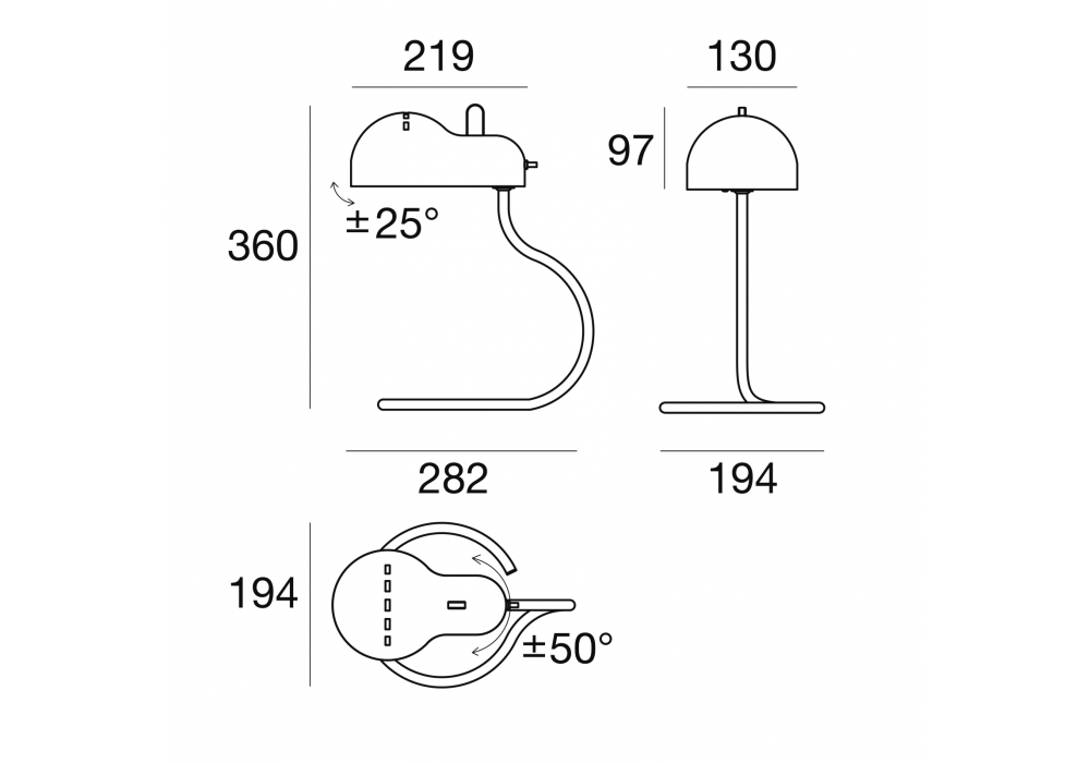 Minitopo conçue par Joe Colombo pour Stilnovo est une lampe de table LED avec tige de support en métal peint ou chromé. Le diffuseur est en métal et peut être orienté verticalement de 25° et horizontalement de 50°. Minitopo est disponible en différentes finitions.