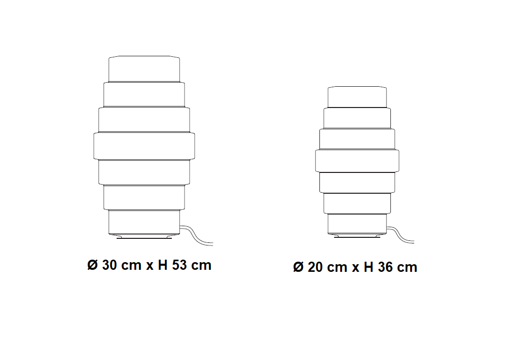 | Dimensions | Ø 20 x H 36 cm; Ø 30 x H 53 cm. |