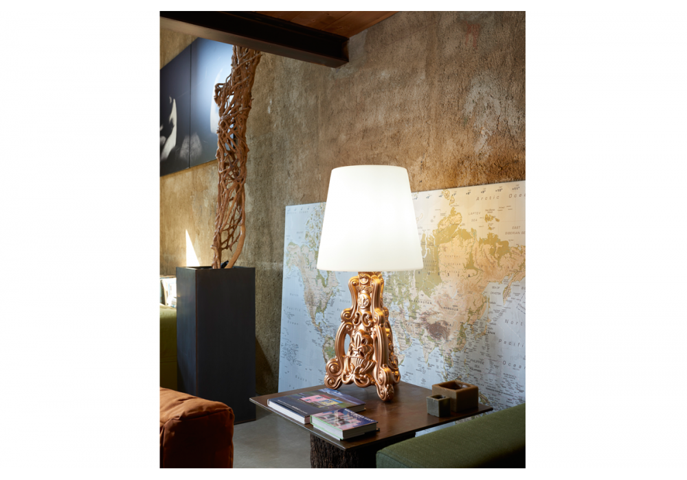 Lady of Love conçue par Graziano Moro & Renato Pigatti est une lampe de table qui allie classicisme et élégance. Née en s'inspirant de l'abat-jour classique, elle propose une réinterprétation originale d'un grand classique baroque. Disponible en différentes finitions