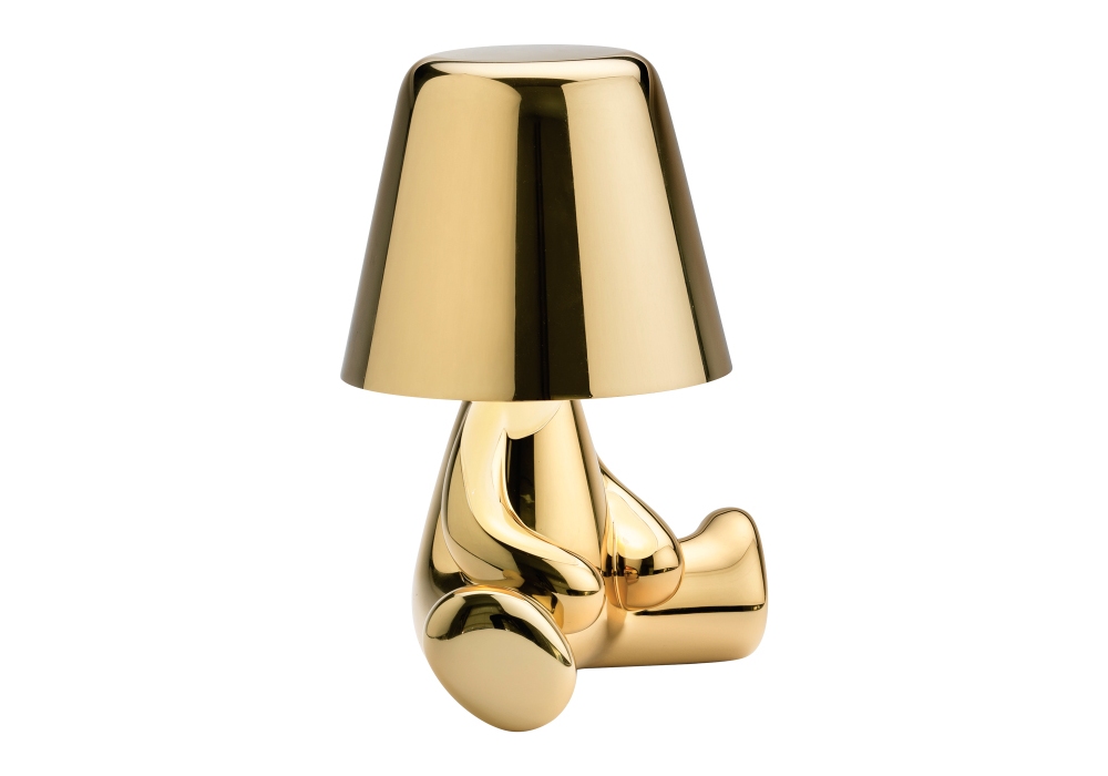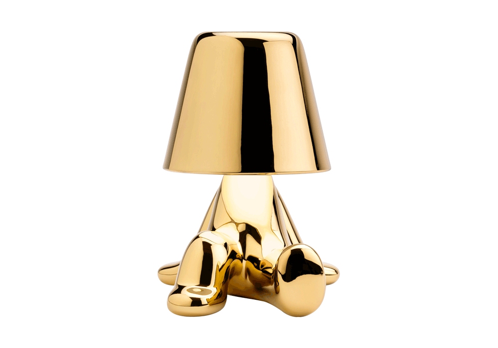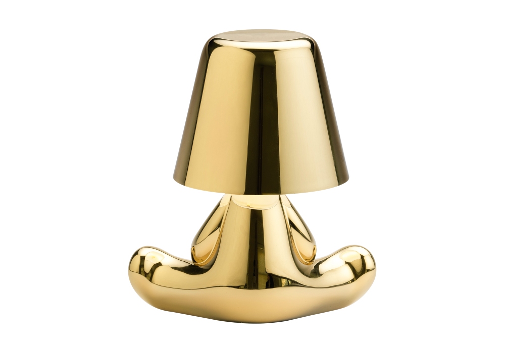 Golden Brothers conçue par Stefano Giovannoni pour Qeeboo est une lampe de table portable rechargeable. Entièrement en polycarbonate de couleur or et adopte une source de lumière LED avec système marche / arrêt soft touch. Golden Brothers est disponible en différents modèles.