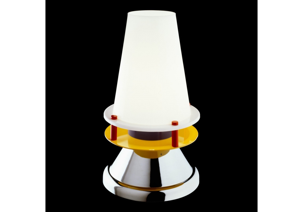 Bordeaux conçue par Nathalie Du Pasquier pour Memphis Milano est une lampe de table en aluminium et plexiglas.
