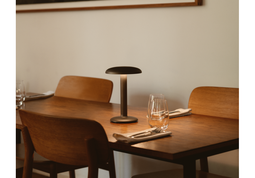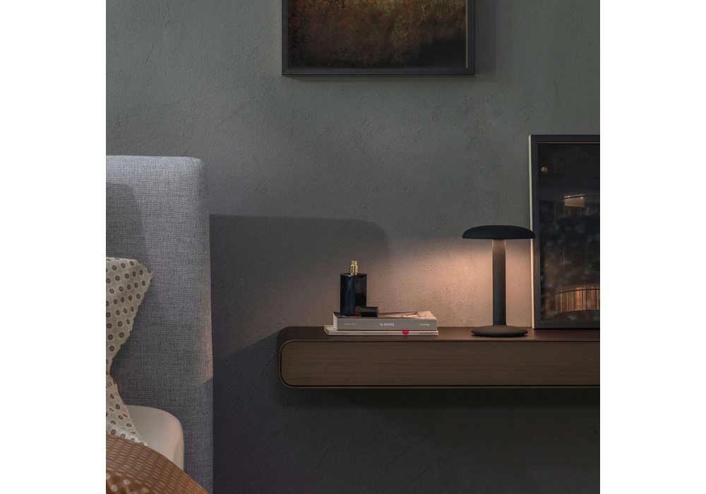 Gustave Residential conçue par Vincent Van Duysen pour Flos est une lampe de table portable en aluminium moulé sous pression et méthacrylate, équipée d'une batterie Li-Ion rechargeable, d'un réglage tactile de 0 à 100 % et d'un câble de recharge USB. Variateur et source lumineuse LED inclus.