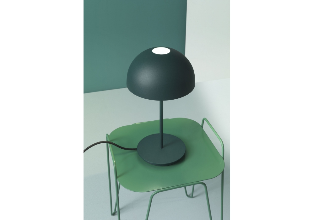 Amedeo conçue par Franco Zavarise pour pour Zava est une lampe de table en fer. Il est possible de personnaliser l'intérieur du diffuseur avec différentes finitions peintes ou à la feuille.