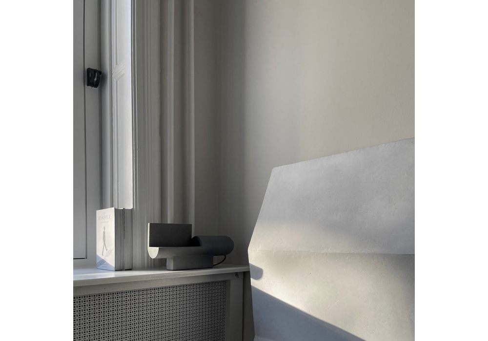 Brutalist conçue par Kristian Sofus Hansen et Tommy Hyldahl pour 101 Copenhagen est une lampe de table sculpturale en béton léger avec une source de lumière cachée.