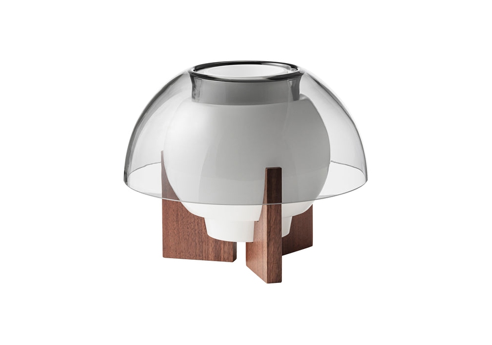 Ergo conçue par Bent Karlby pour Lyfa est une lampe de table en verre opale à 3 couches de deux couleurs différentes : gris et sable.