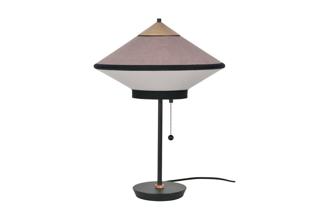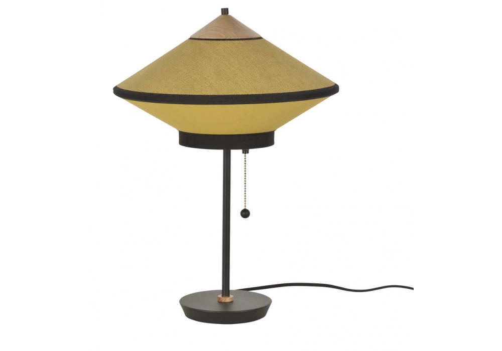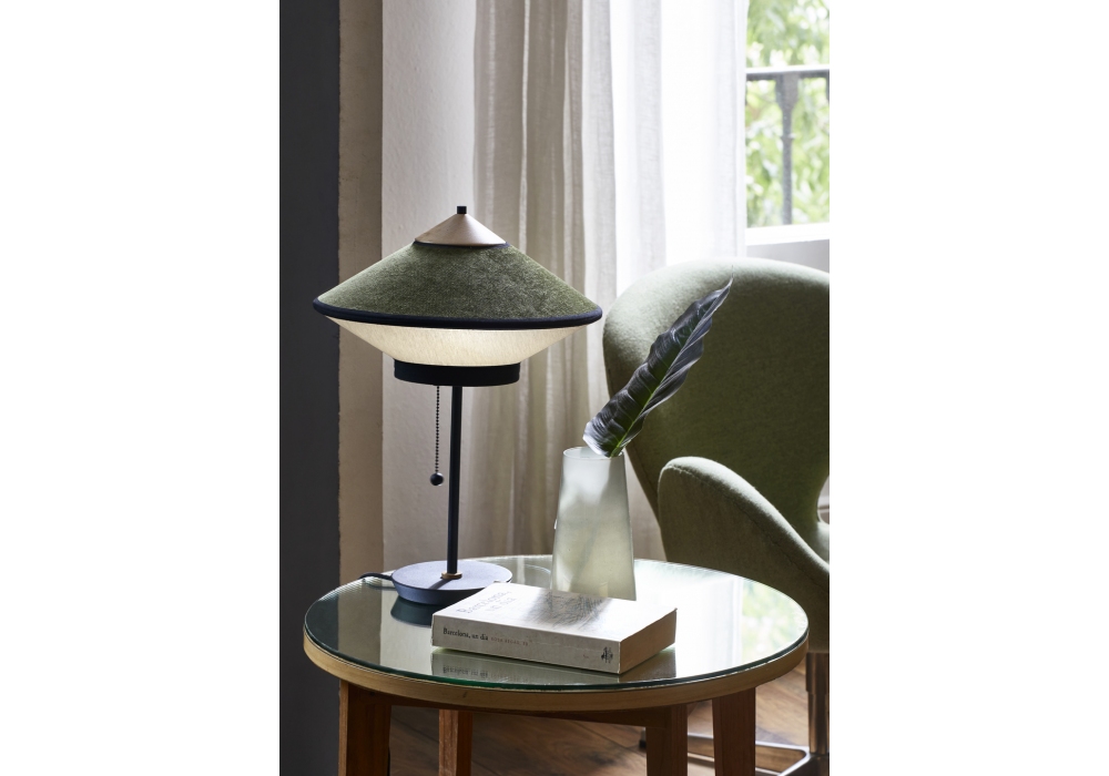 Cymbal conçue par Jette Scheib pour Forestier est une lampe de table en velours et bambou. Disponible en différentes finitions.
