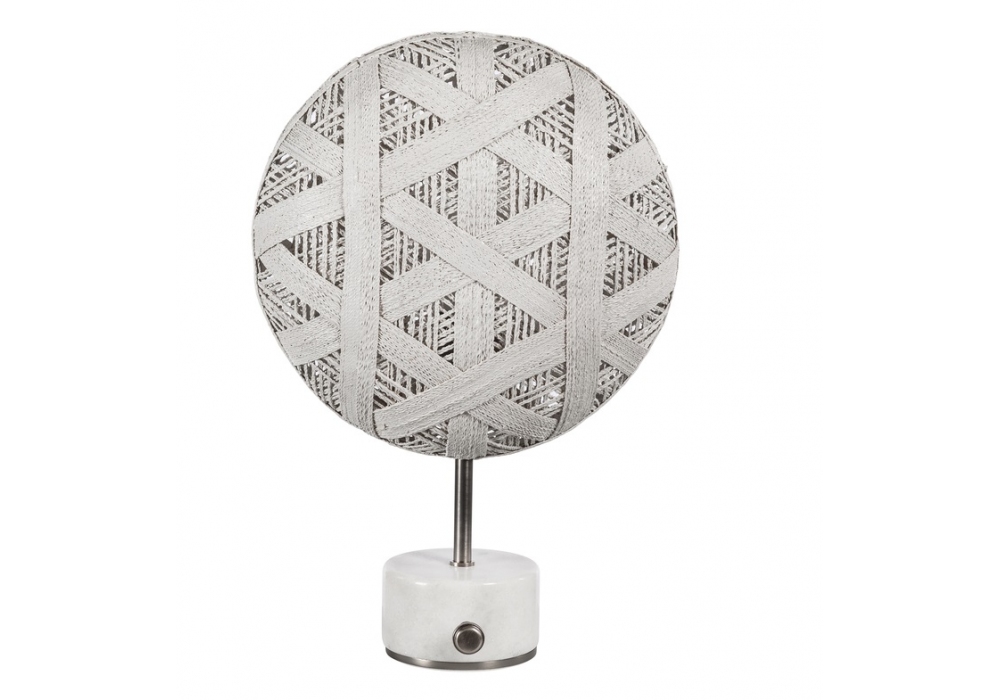Chanpen conçue par Anon Pairot pour Forestier est une lampe de table avec base ronde en marbre équipée d'un variateur, structure en métal, abat-jour rond Ø 26 cm ou Ø 36 cm, en abaca et cordon textile. Disponible en différentes finitions et versions.