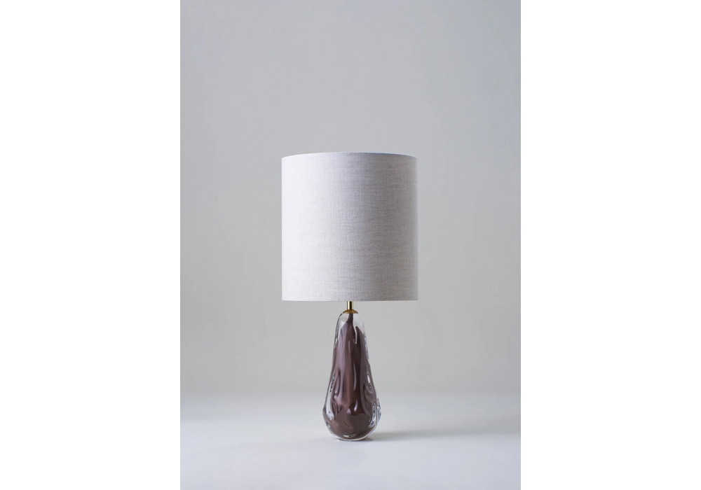 Avocado conçue et produite par Porta Romana est une lampe de table structurée en verre soufflé et laiton patiné. L'abat-jour est en tissu et masque une source lumineuse avec une douille E27 de type LED alimentée par un câble en fibre textile. Avocado est disponible en différentes finitions pour chaque élément.
