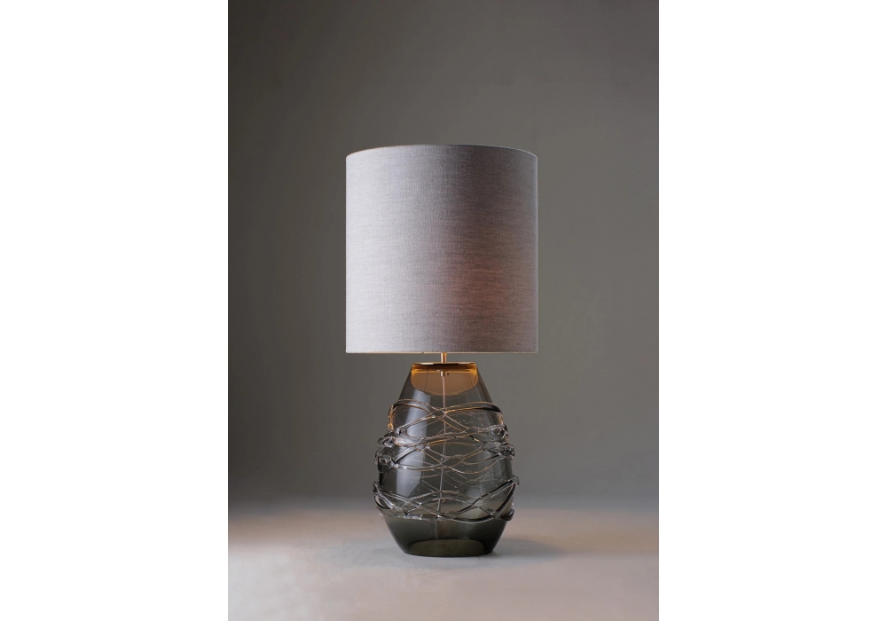 Cabochon conçu et produit par Porta Romana est une lampe de table structurée en verre soufflé fini avec des détails en laiton patiné. L'abat-jour est en tissu et abrite une source lumineuse de type LED avec une douille E27. Cabochon est disponible en différentes finitions d'abat-jour.