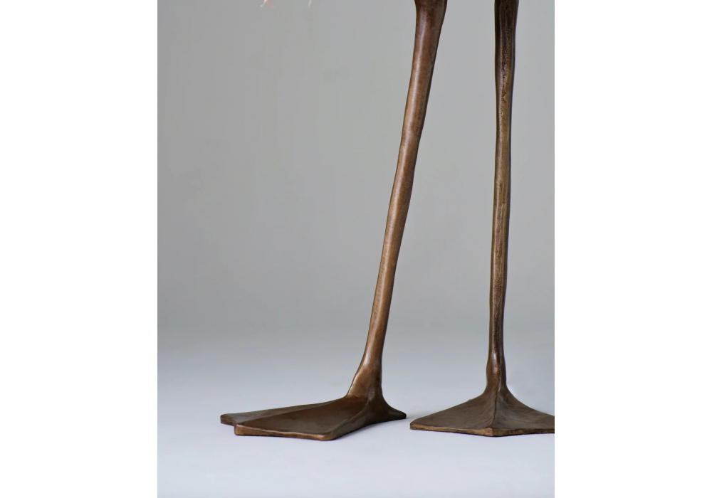 Duck Feet conçue et produite par Porta Romana est une lampe de table inspirée des projets de Meret Oppenheim. La base est structurée en laiton obtenu par fusion et peint en différentes finitions. L'abat-jour est en tissu et abrite une source lumineuse de type LED avec douille E27 alimentée par un câble en fibre textile. Duck Feet est disponible avec un abat-jour en tissu ou en plumes dans différentes finitions.