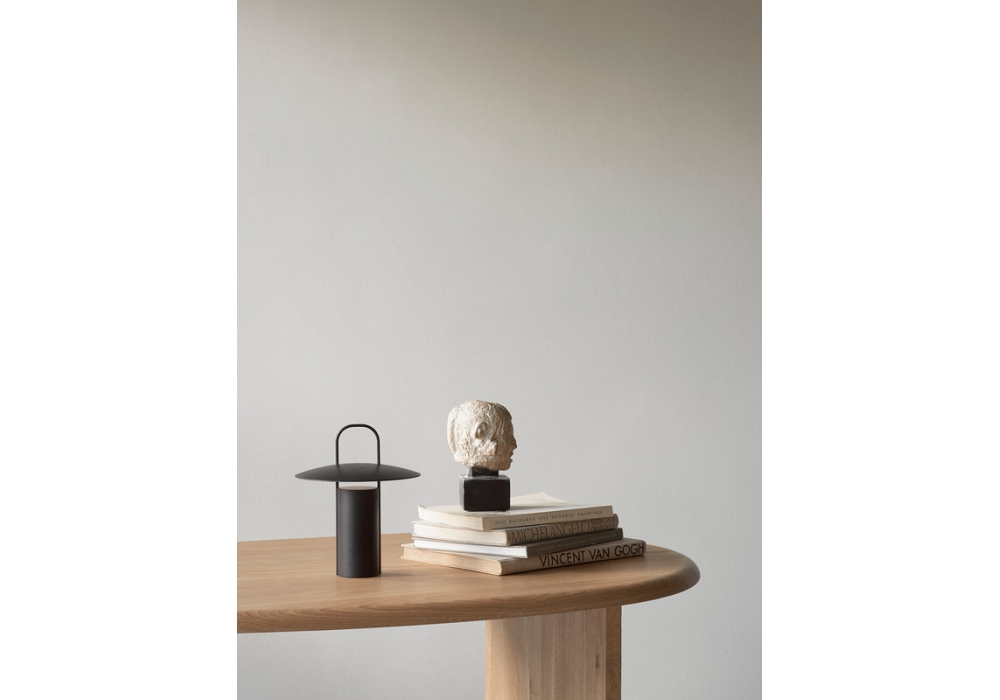 Ray Portable conçue par Daniel Schofield pour Audo Copenhagen est une lampe de table portable en aluminium, disponible en différentes finitions.