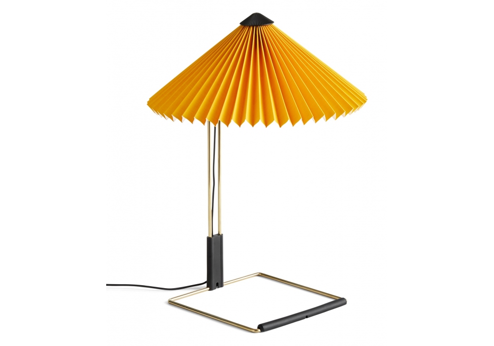 Matin conçue par Inga Sempé pour Hay est une lampe de table avec un abat-jour en coton couplé à une feuille de PVC. Vis supérieure en ABS moulé par injection noire et diffuseur en fil d'acier courbé avec finition en laiton poli avec contrepoids en acier moulé à la cire perdue et ABS moulé par injection. Câble en silicone noir avec interrupteur en ligne ABS. Disponible en différentes dimensions et finitions.