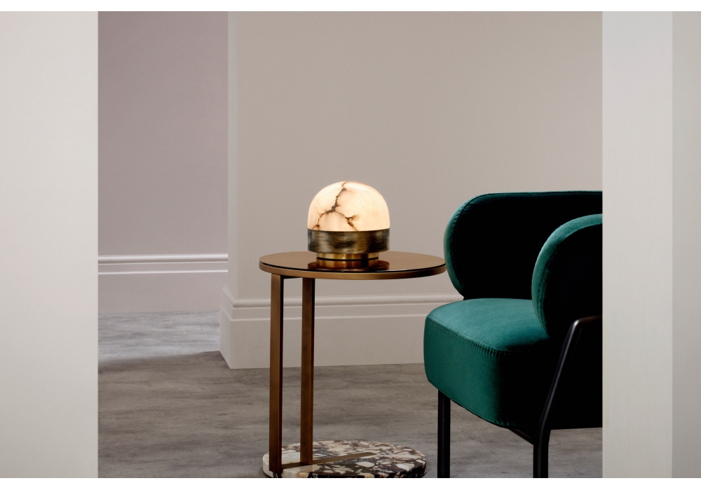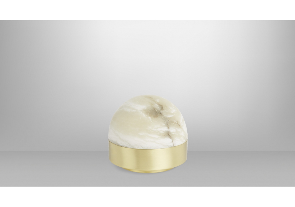 Lucid conçue par CTO Lighting est une lampe de table réalisée avec une base en bronze, laiton satiné ou laiton oxydé argent et abat-jour en albâtre poli. Disponible en 2 dimensions.