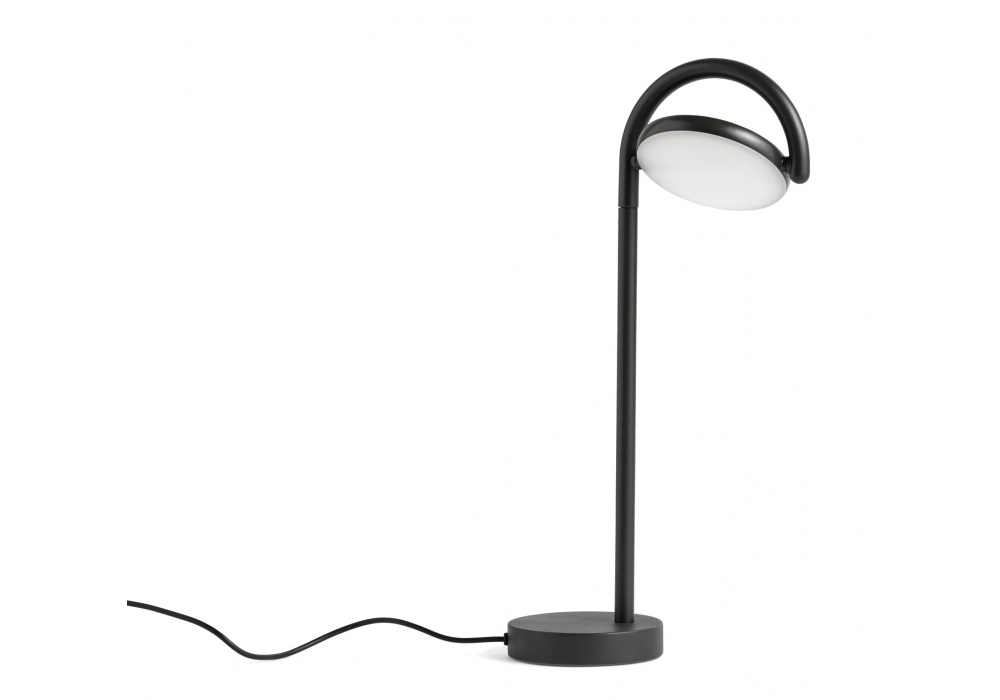 Marselis conçue par Kaschkasch pour Hay est une lampe de table avec corps de lampe en aluminium moulé sous pression et tube vertical en acier peint par poudrage mat, roulements en nylon moulé par injection et diffuseur en polycarbonate translucide (PC) avec contrepoids interne en fonte de sable. Disponible en différentes finitions.