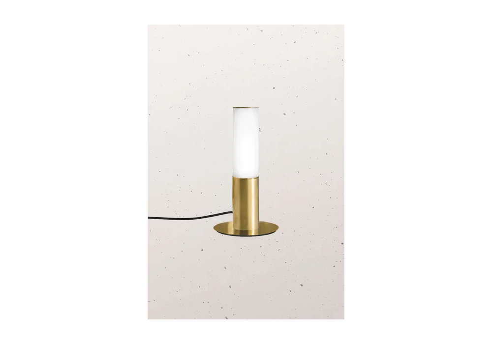 Etoile conçue par Mirta Lando pour Il Fanale est une lampe de table avec base circulaire et corps cylindrique en laiton. Le diffuseur est en verre opale et protège une source de lumière LED. Etoile est disponible en différentes finitions.