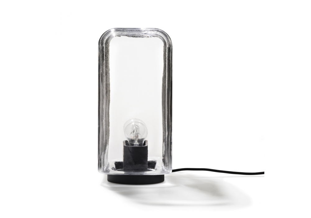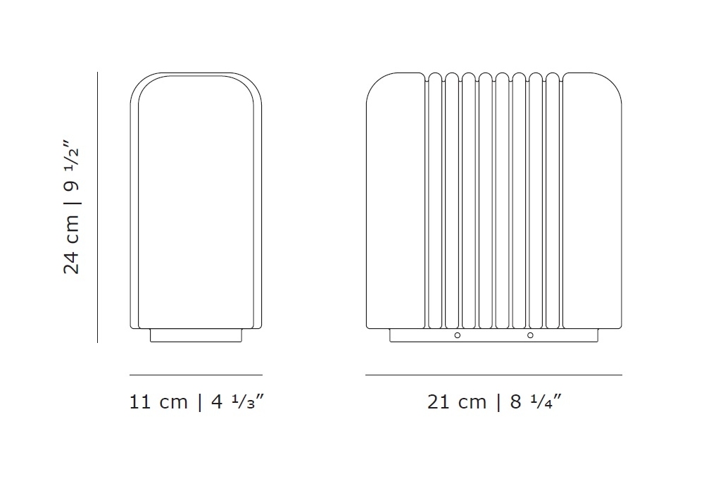 Lari Mini conçue par Angelo Mangiarotti pour Karakter est une lampe de table réalisée avec un abat-jour en verre soufflé à la bouche et une base en aluminium moulé sous pression enduit de poudre noire. Batterie au lithium polymère. Câble USB-C inclus.