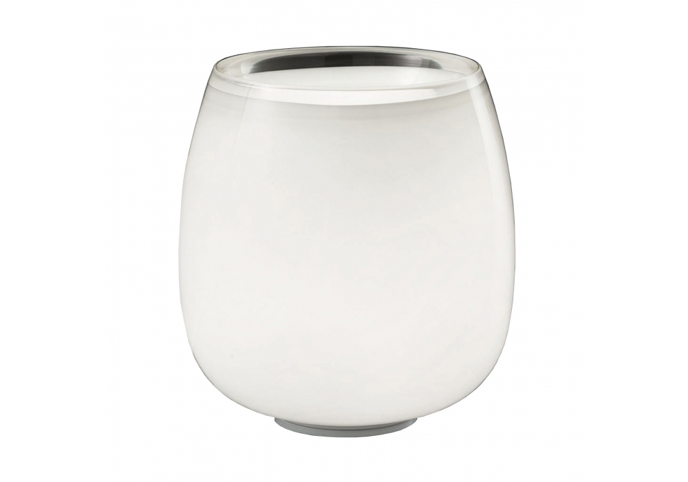 Implode conçue par Gregorio Spini pour Vistosi est une lampe de table à base circulaire en métal peint en blanc brillant. Le diffuseur est en verre de forme cylindrique évasée dans une finition blanc/cristal et adopte une source lumineuse halogène ou LED avec douille G9/E27. Implode est disponible en différents modèles.