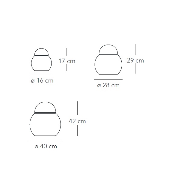 | Dimensions | Ø 16 x H 17 cm; Ø 28 x H 29 cm, Ø 40 x H 42 cm. |