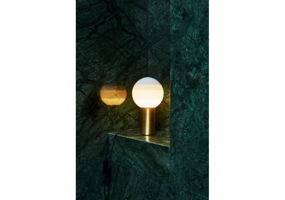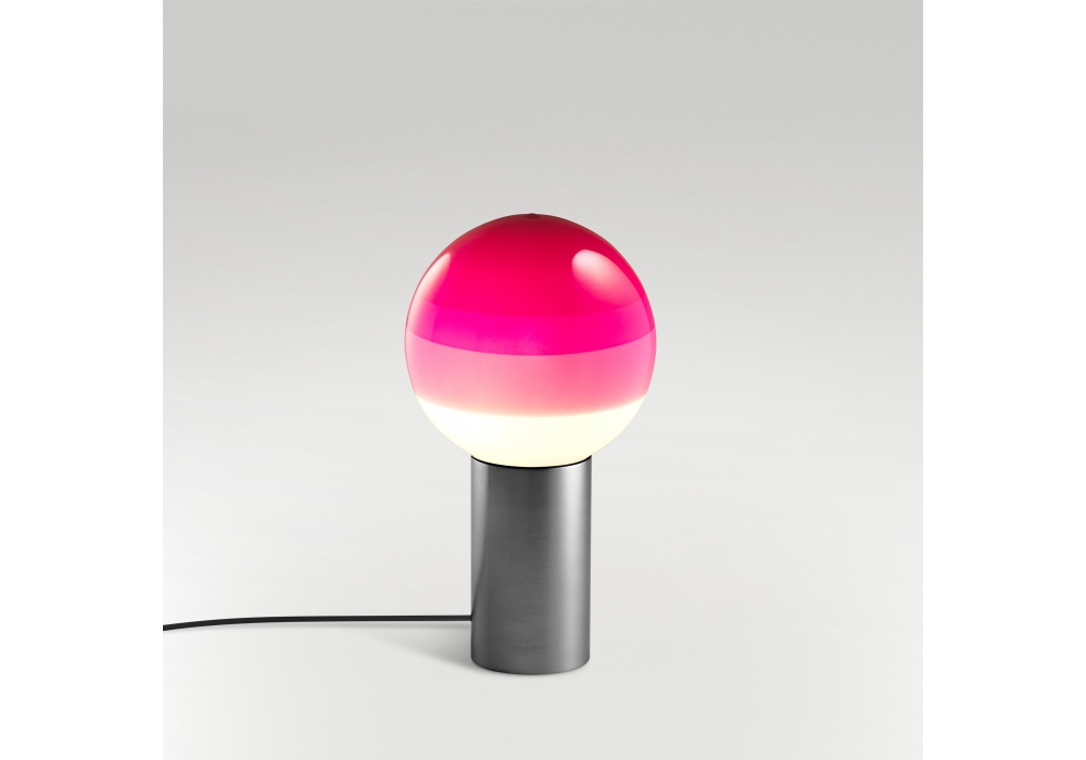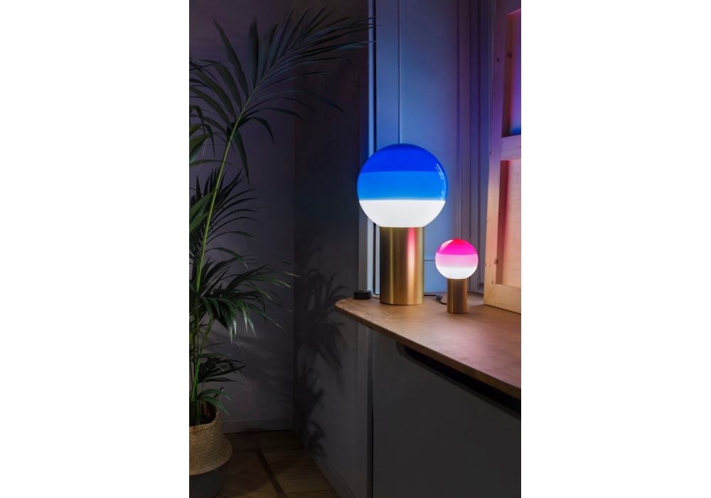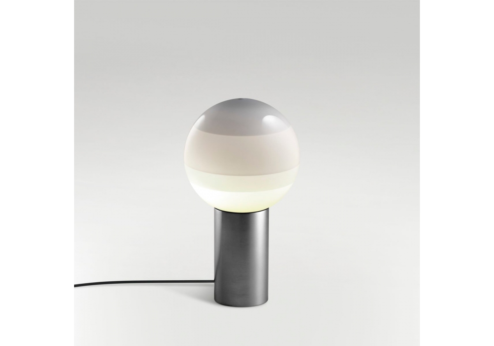 Dipping Light conçue par Jordi Canudas pour Marset est une lampe de table en métal et diffuseur en verre soufflé blanc brillant avec peinture en couches. Disponible en différentes finitions et tailles.