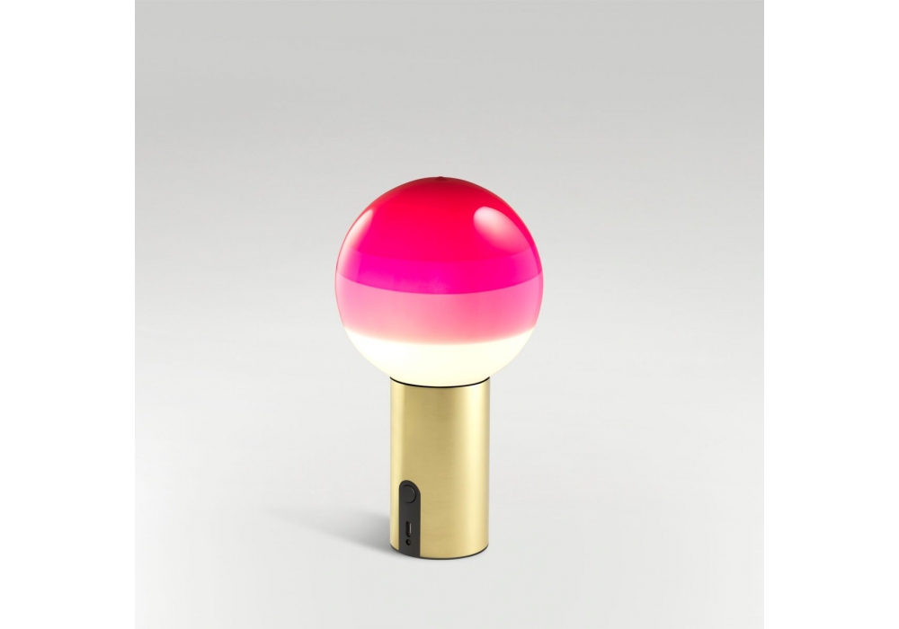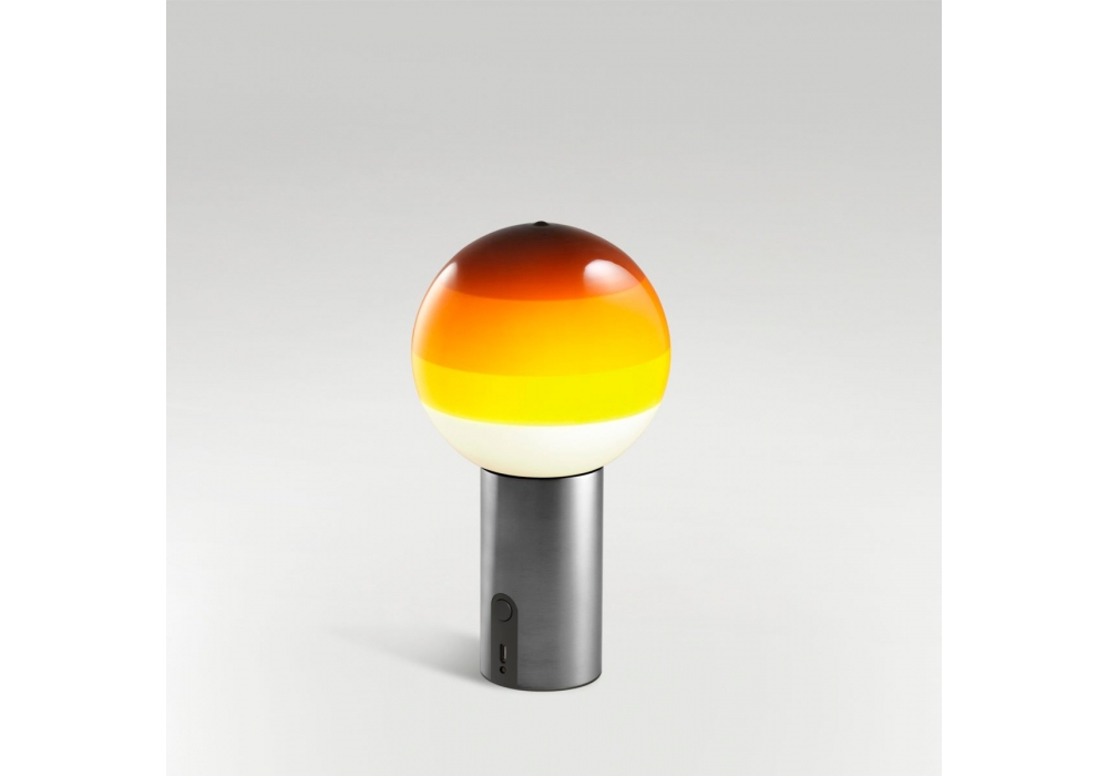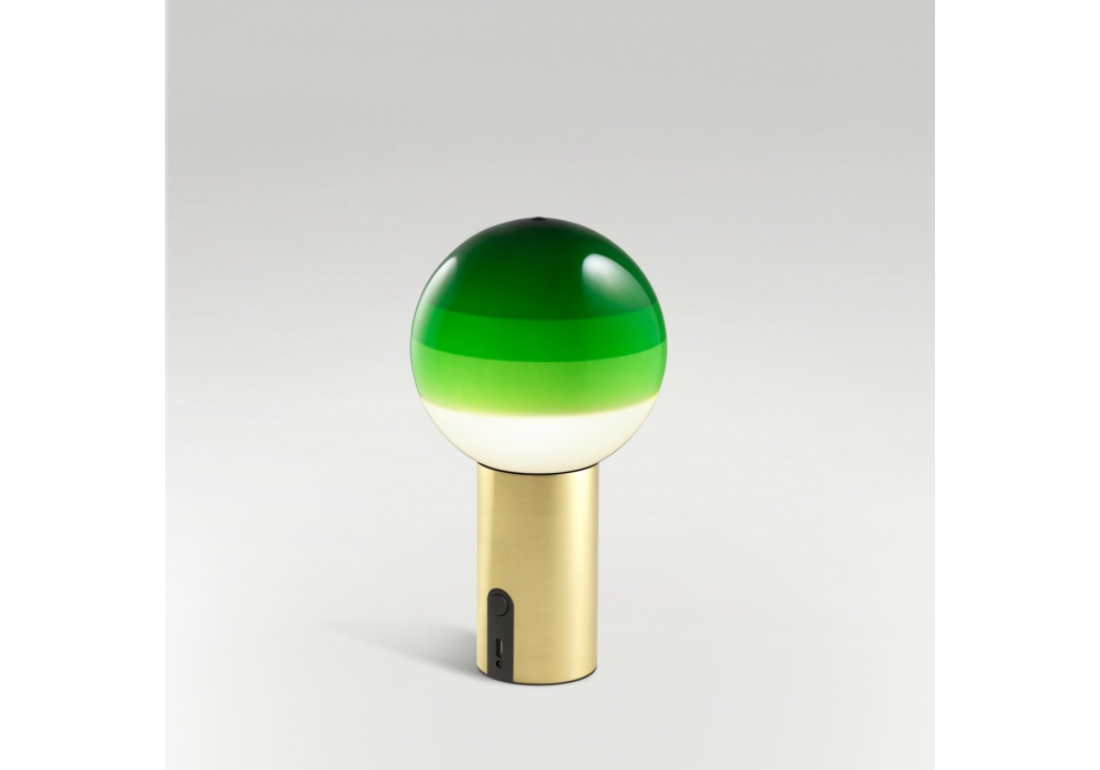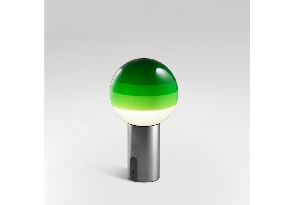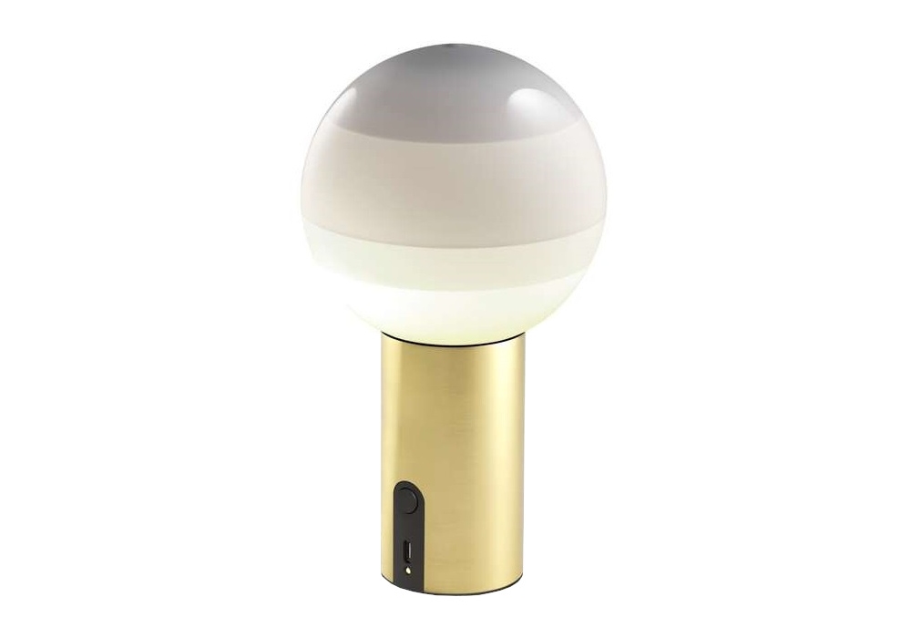 Dipping Light conçue par Jordi Canudas pour Marset est une lampe de table portable en métal et diffuseur en verre soufflé blanc brillant avec peinture en couches. Disponible en différentes finitions.