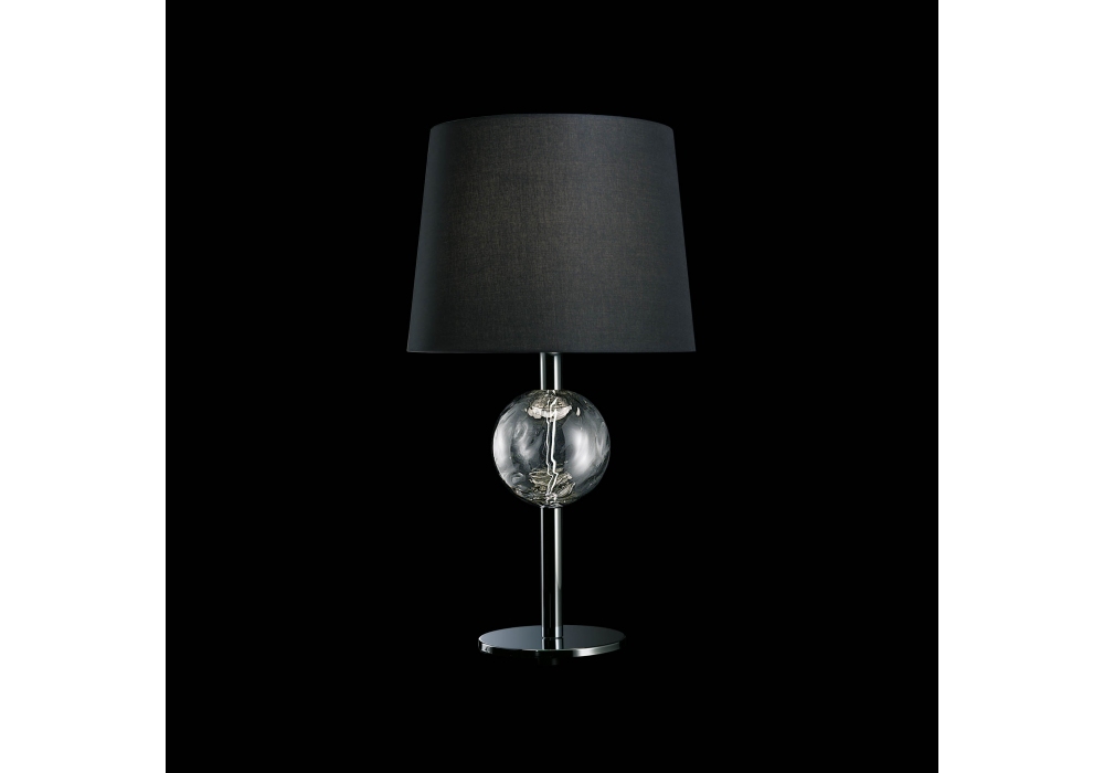Marta conçue et produite par Barovier & Toso est une lampe de table avec base circulaire et tige verticale en métal enrichie par des applications sphériques en verre vénitien. Le diffuseur est en tissu et protège une source lumineuse LED ou halogène dimmable. Marta est disponible en différentes finitions.