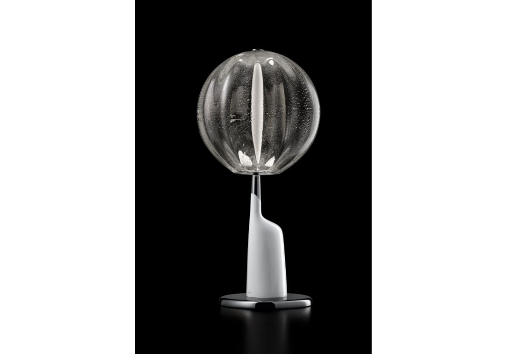 Sideris conçue par Luca Nichetto pour Barovier & Toso est une lampe de table avec base circulaire en chrome noir ou couleur or galvanisé et corps de lampe en porcelaine blanche. Le diffuseur est sphérique en cristal vénitien et abrite une source de lumière LED dimmable. Sideris est disponible en différentes finitions.