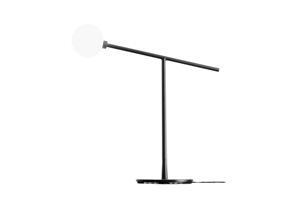 Brillo conçue par Alessio Bassan pour Capodopera est une lampe de table à lumière diffuse avec diffuseur en verre Pyrex transparent ou opale. La structure est en métal thermolaqué noir mat. Gradateur et convertisseur de prise inclus.