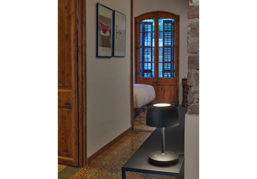 Bol conçue par Estudi Manel Molina pour Bover est une lampe de table avec une base circulaire et une tige verticale structurée par une combinaison d'acier, de laiton et d'aluminium. L'abat-jour a une forme arrondie et comporte un diffuseur en polycarbonate qui masque une source lumineuse LED à intensité variable. Bol est disponible en différents modèles dans une seule finition noire mate.