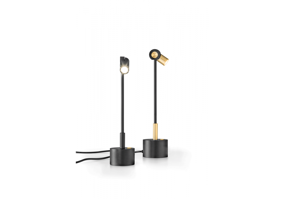 Nino Table conçue par Franco Zavarise pour Zava est une lampe de table en aluminium, laiton et fer.