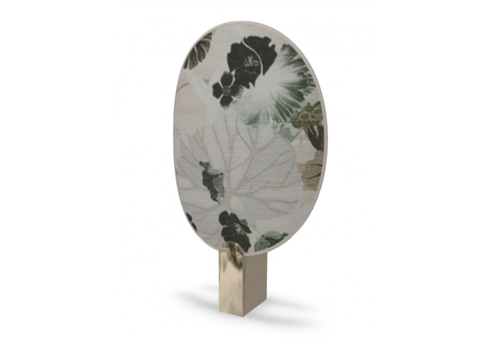 Akira conçue par Alessandro La Spada pour Visionnaire est une lampe de table avec base en laiton poli ou satiné avec abat-jour en tissu concave en forme d'éventail. L'abat-jour arrière est en acier inoxydable micro-perforé anti-éblouissement. La douille est en laiton tourné avec une douille de type G9 et un diffuseur en verre. Akira est disponible en différents modèles et finitions.