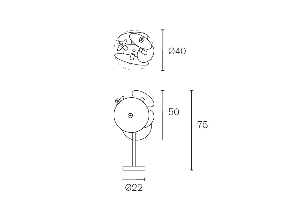 Solis conçue par William Brand pour Brand Van Egmond est une lampe de table réalisée avec structure et réflecteurs en métal. Disponible en différentes finitions.