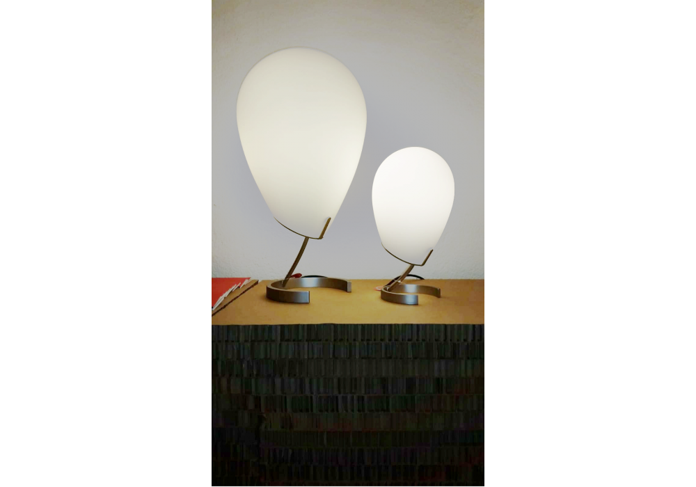 Equilibrio conçue par Michele De Lucchi pour Firmamento Milano est une lampe de table à lumière diffuse réalisée avec une base en acier et un diffuseur en verre soufflé opalin dépoli à l'acide. Disponible en 2 dimensions.