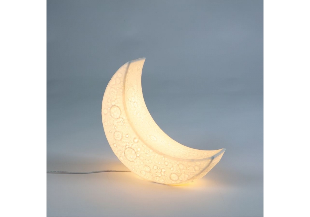 My Tiny Moon conçue par Marcantonio pour Seletti est une lampe de table en porcelaine blanche. La source lumineuse adoptée est de type LED avec une gradation de 3000 K°.