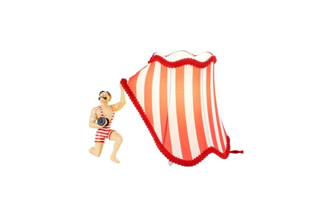 Circus Bruno conçue par Uto Balmoral pour Seletti est une lampe de table réalisée en résine colorée, métal et polyester. La source lumineuse adoptée est de type LED alimentée par un câble rouge.