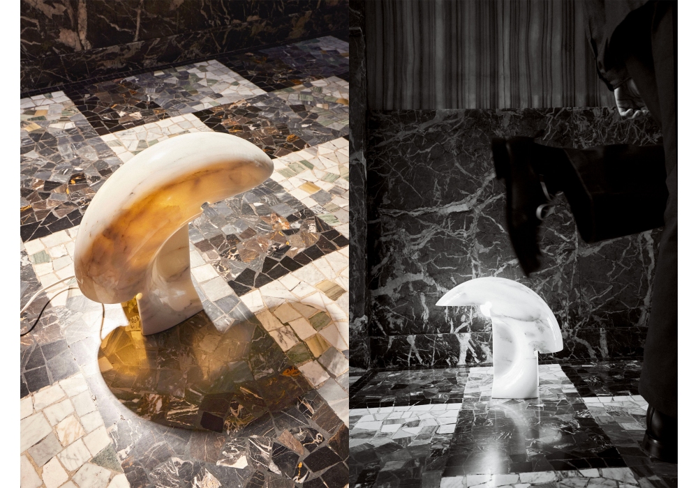 Biagio conçue par Tobia Scarpa pour Flos est une lampe de table à lumière directe. Corps de lampe réalisé à partir d'un seul bloc de marbre statuaire blanc de Carrare. Gradable avec interrupteur intégré (réglable à distance). Ampoule non incluse.