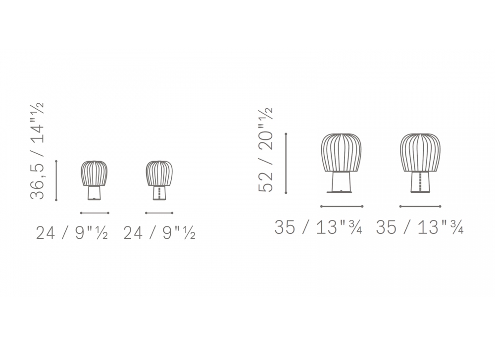 | Dimensions | Ø 24 x H 36,5 cm; Ø 35 x H 52 cm. |