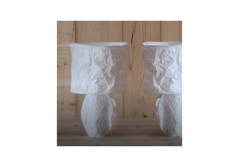 Pajama conçue par Renè Barba pour Gervasoni est une lampe de table réalisée en Tyvek, base interne en résine et structure d'abat-jour en métal. Ampoule non fournie.