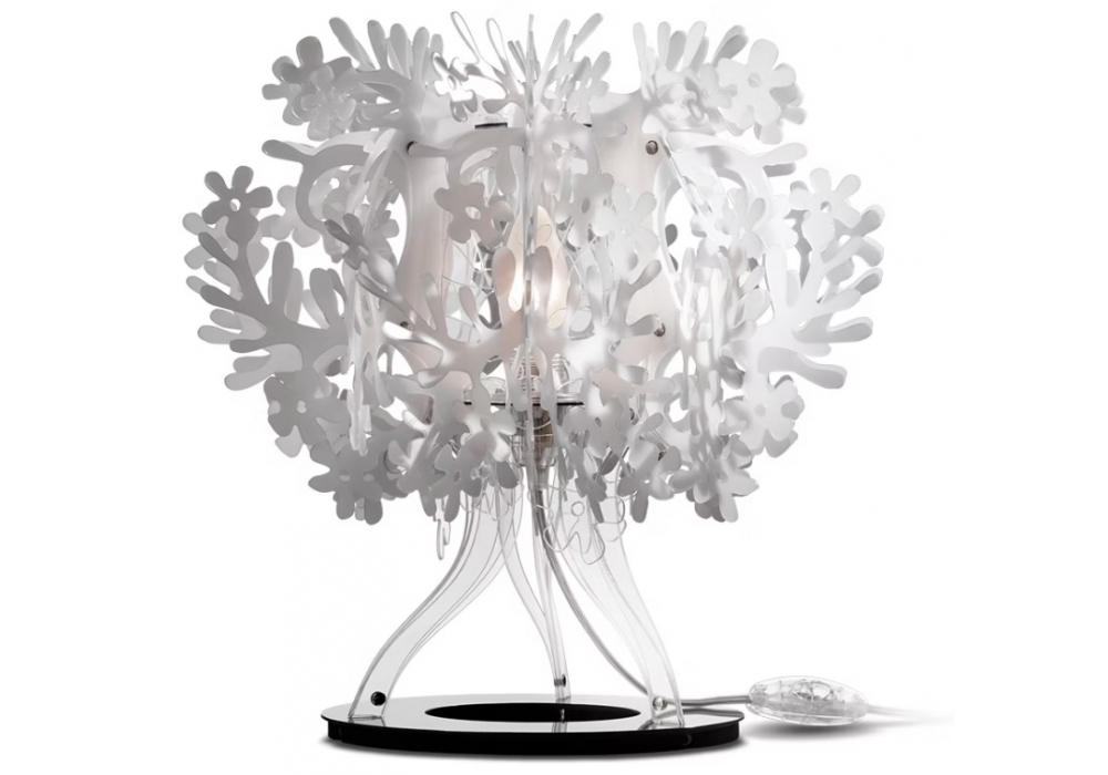 Fiorellina conçue par Nigel Coates pour Slamp est une lampe de table avec une base circulaire entièrement réalisée en Opalflex®. La source lumineuse adoptée est une LED à filament alimentée par un câble équipé d'un interrupteur marche/arrêt.