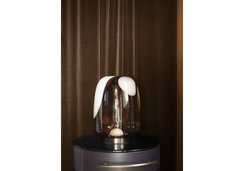 Haiku conçue par Baxter P. est une lampe de table avec source de lumière LED en verre soufflé transparent trempé, disponible en deux dimensions. Gradation avec bouton.