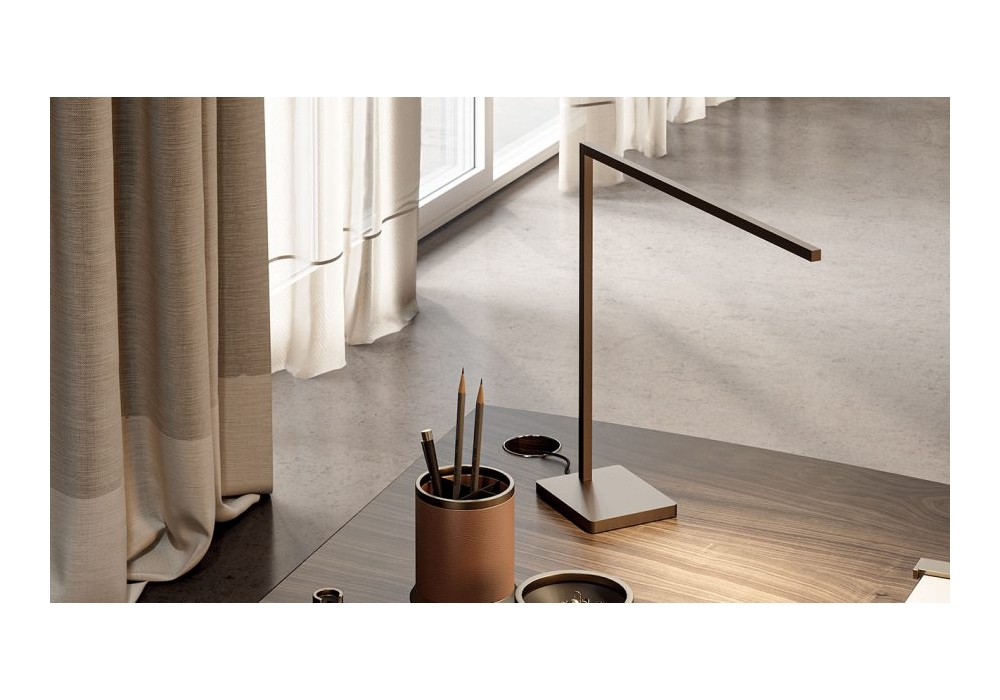 Essential conçue par Tulczinsky pour Reflex Angelo est une lampe de table en métal finition laiton foncé. Système tactile pour l'allumage.