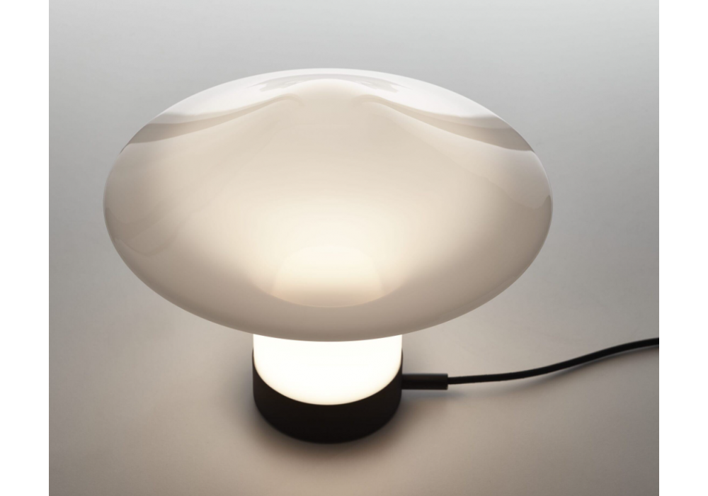 Trottola conçue par Federico Peri pour Brokis est une lampe de table en verre brillant disponible en plusieurs finitions. Le corps de la lampe et son variateur sont en métal anodisé de la même couleur. Le câble d'alimentation est équipé d'un variateur électronique permettant de régler l'intensité et la température de couleur (TW). La source lumineuse utilisée est une LED à intensité variable.