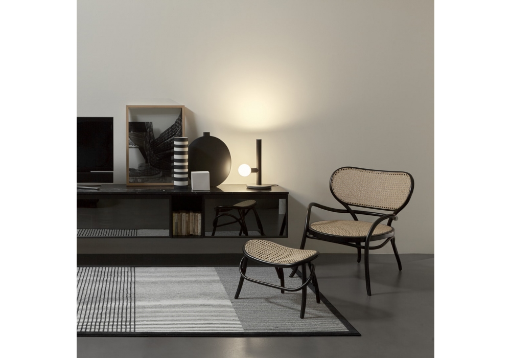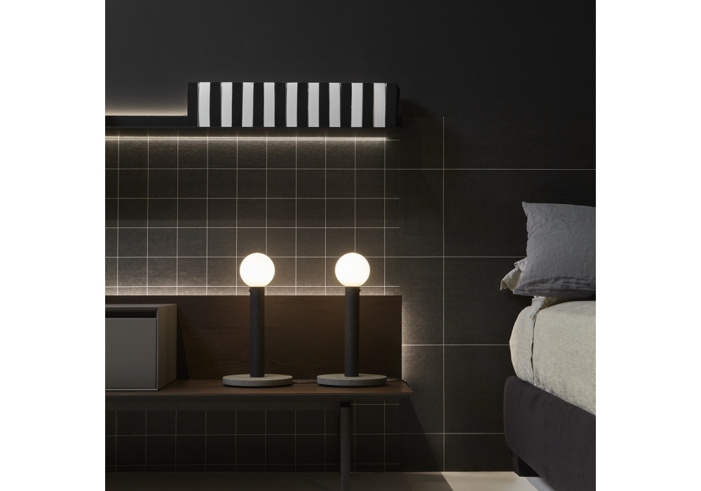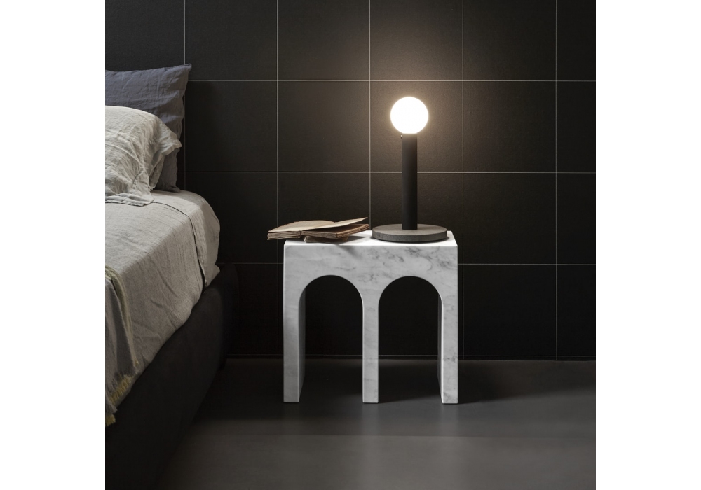 Apollo conçue par Antonio Lupi est une lampe de table avec éclairage LED réalisée avec une base en pierre Basaltina et une structure en laiton peint en relief ou en blanc mat.