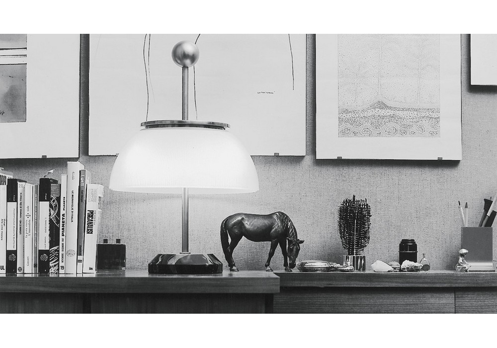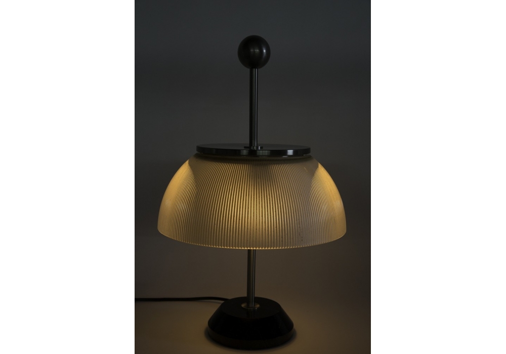Alfa conçue par Sergio Mazza pour Artemide est une lampe de table réalisée avec une base circulaire en marbre et une tige verticale en acier nickelé mat. Le diffuseur est un dôme en cristal et protège les sources lumineuses LED à intensité variable.