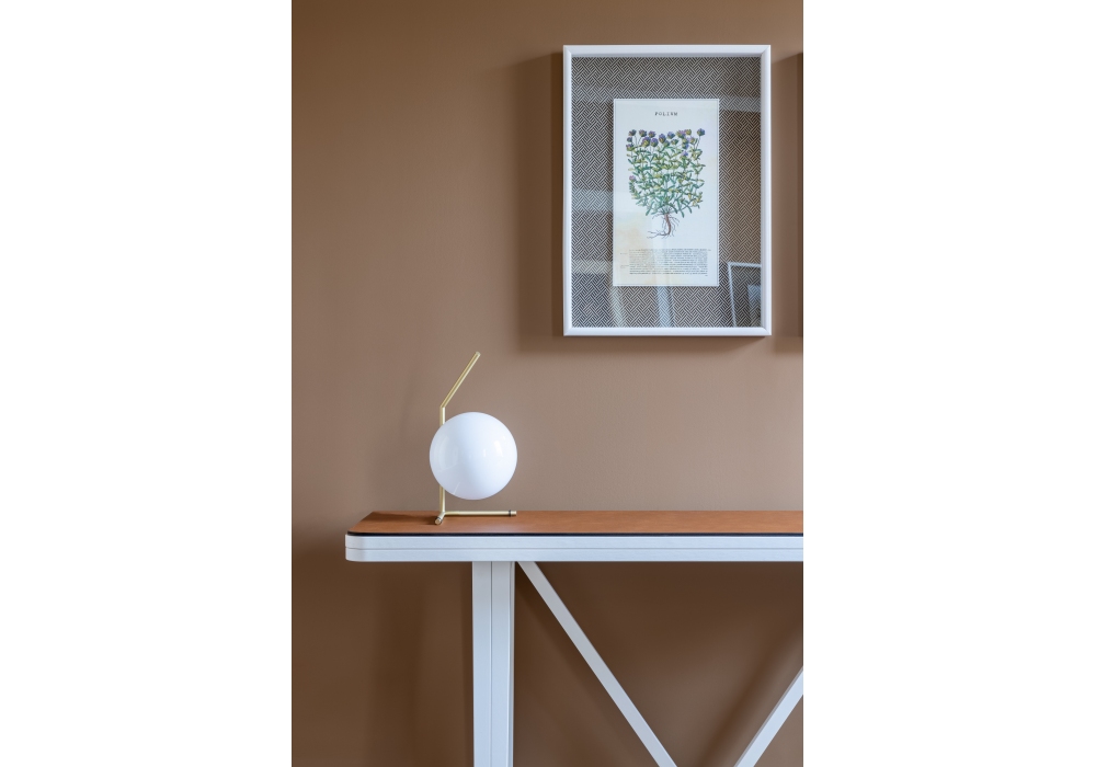 IC T1 conçue par Michael Anastassiades pour Flos est une lampe de table à lumière diffuse. Structure en laiton, acier noir ou chromé. Diffuseur opale en verre soufflé. Variateur d'intensité sur le câble d'alimentation. Ampoule non incluse.