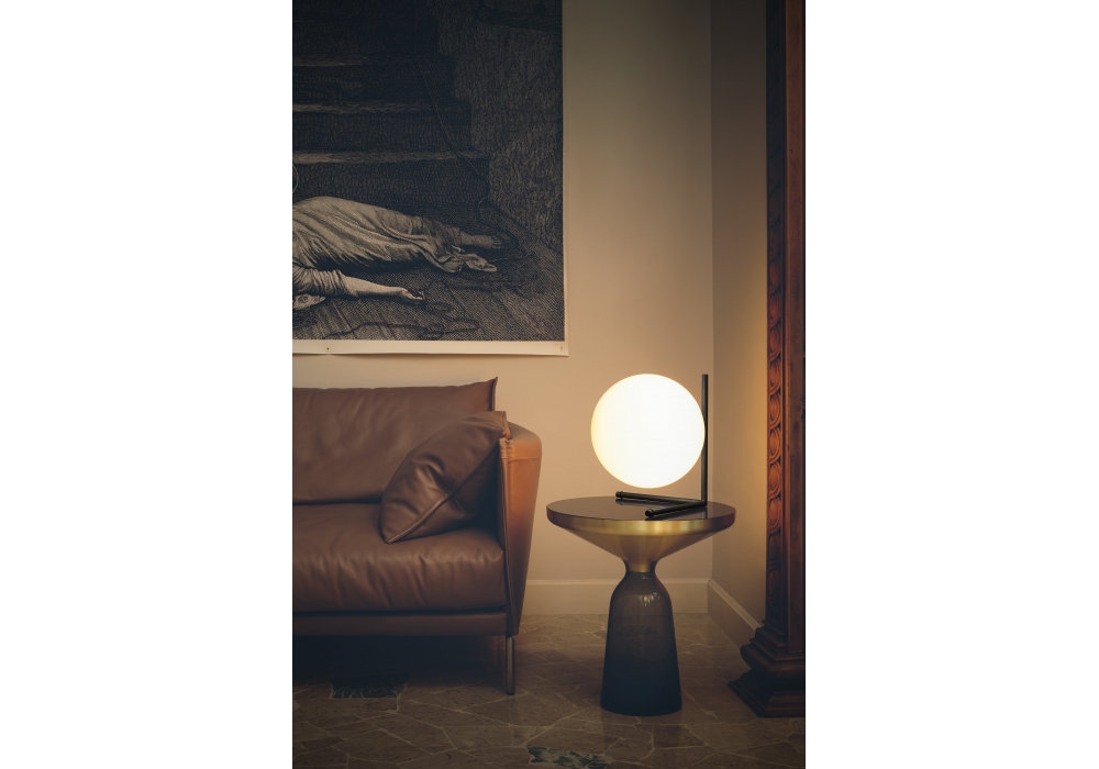 IC T2 conçue par Michael Anastassiades pour Flos est une lampe de table à lumière diffuse. Structure en laiton, acier noir ou chromé. Diffuseur opale en verre soufflé. Variateur d'intensité sur le câble d'alimentation. Ampoule non incluse.
