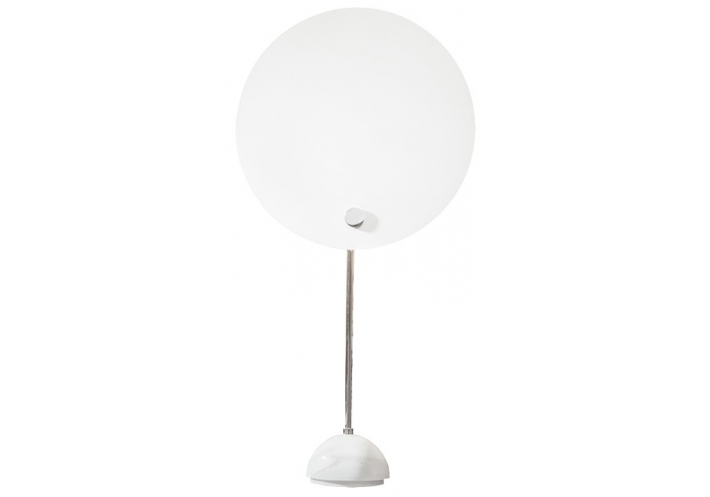 Kuta conçue par Vico Magistrettii pour Nemo est une lampe de table à base circulaire en marbre blanc. La tige et les petites pièces sont en métal chromé. Le réflecteur est circulaire en aluminium peint en noir et blanc et abrite une source lumineuse LED, halogène ou Fluo dimmable.