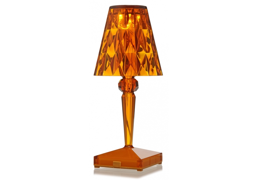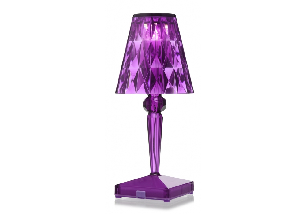 Battery conçue par Ferruccio Laviani pour Kartell est une lampe de table en PMMA transparent, teinté dans la masse ou métallique.
