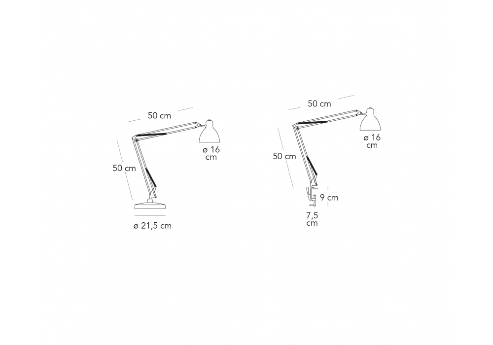 Naska LED produite et conçue par FontanaArte est une lampe de table, avec une structure de bras en métal réglable disponible en quatre couleurs: chrome, noir, blanc ou or et deux versions avec base circulaire ou à pince. Le diffuseur est en aluminium et adopte une source lumineuse LED à intensité variable (incluse).