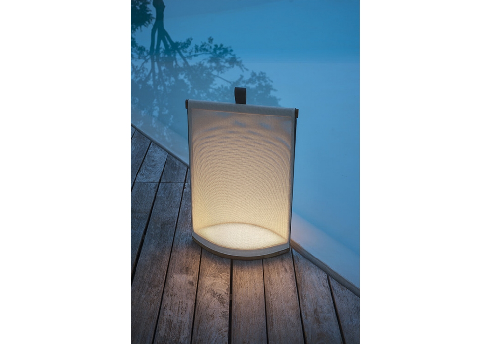 Pillow conçue par Gordon Guillaumier pour Roda est une lanterne composée d'une base en teck et d'un abat-jour en Canatex. La source lumineuse LED est alimentée par une batterie avec 6/8 heures d'autonomie.