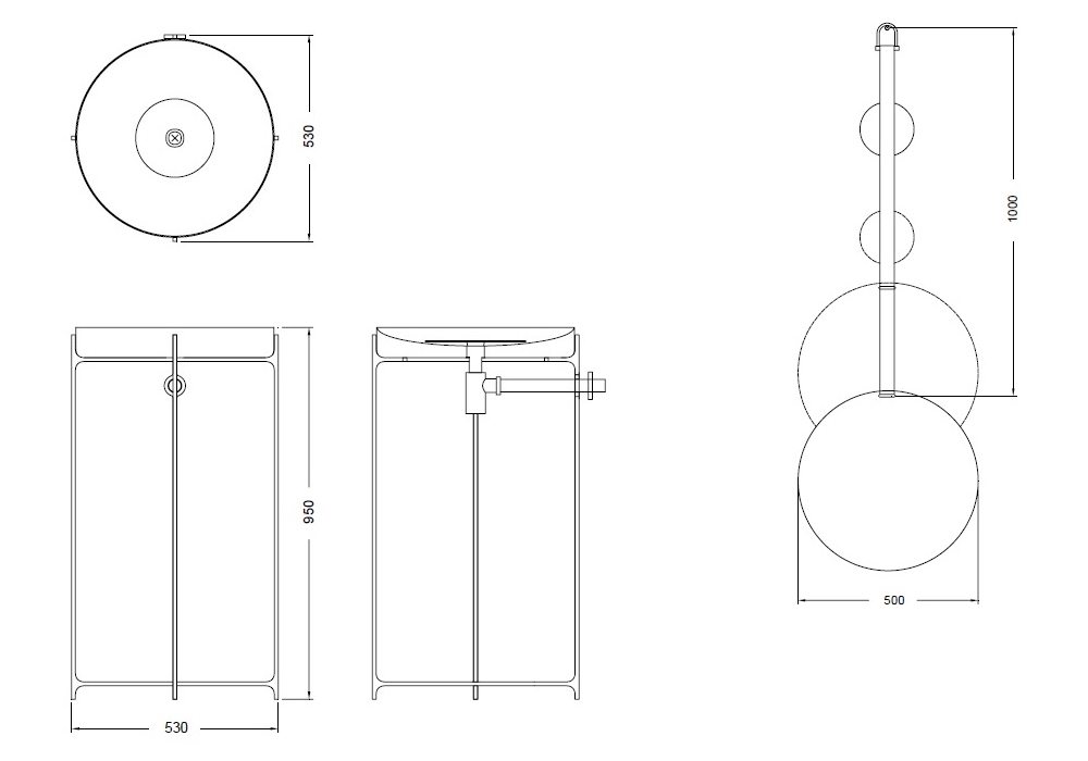 | Dimensions | Ø 53 x H 95 cm; Miroir: Ø 50 x H 150 cm |